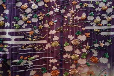 | View Original: | Kosode (garment with small wrist openings), view 2, Edo period, 19th century, stream, flowing plant, house and insect cage design on purple and light green tussah silk crepe ground - Tokyo National Museum - DSC06000.JPG (5472x3648) | |||