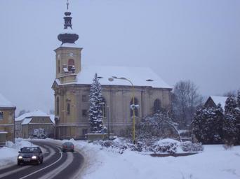 Keywords: Kostel Jezvé 1.jpg cs Kostel v Jezvé u silnice uzavřen neoznačen own Zákupák 2010-12-29 Winter in the Czech Republic Church of Saint Lawrence Jezvé