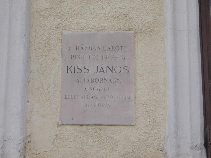 | Keywords: KÅ‘szeg Kiss János Emléktábla.JPG de Kiss János Denkmal im ehemaligen Wohnhaus in Güns hu Kiss János alt emléktáblája az egykori lakóházán KÅ‘szegen Saját kép Pan Peter12 2010-04-22 Plaques in KÅ‘szeg Plaques to soldiers in Hungary Here-lived plaques in Hungary János Kiss 1883 “1944 |