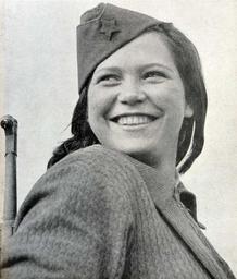 | Keywords: Kozarčanka - Milja Marin.jpg en Kozarčanka Woman from Kozara a World War II photograph that became iconic in Socialist Yugoslavia The subject of the portrait is a Yugoslav Partisan Milja Marin née Toroman an ethnic Serb woman from a village at the foot of Mount Kozara in northern Bosnia sr Фотог афија Коза чанка По т ет па тизанке иље а ин ођ То оман из Поткоза ја Original publication Žorž Skrigin 1968 https //books google com/books id js4MAQAAMAAJ Rat i pozornica Belgrade Serbia Turistička štampa p 248 Reference https //books google com/books id _XytCAAAQBAJ pg PA127 Partisans in Yugoslavia Literature Film and Visual Culture p 127 <br/> Immediate source http //postyu info/post/19064727801/milja-marin December 1943 January 1944 Georgij Žorž Skrigin PD-Serbia PD-1996 RS Photograph published in 1968 1943 photographs 1944 photographs World War II in Yugoslavia in 1942 Bosnia and Herzegovina in World War II Kozara Women in World War II Black and white photographs of Bosnia and Herzegovina Pictorialism Black and white photographic portraits Black and white portrait photographs of adolescent girls MP40 |
