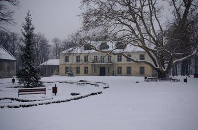 Keywords: Kozy Palac 001.JPG Kozach Kozy Rechts die zweitälteste Platane Polens own Janericloebe 2010-01 Palace in Kozy Winter 2009-2010 in Silesian Voivodeship