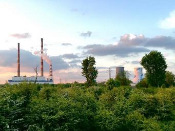 Keywords: kraków chimneys combined heat and power plant the industry poland smoke sky clouds glomerulus cloud cover nature the sun green contrast foliage weather grass west sunset evening tree landscape