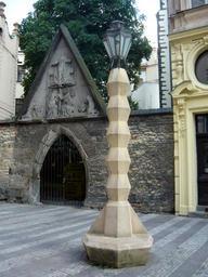 | Keywords: KralicekLamp.jpg en Emil Králíček 1877-1930 - lantern behind Adam pharmacy Prague Jungmann sq cs Emil Králíček 1877-1930 - lucerna za Adamovou lékárnou Praha Jungmannovo náměstí own Gampe Pouliční lampa Emil Králíček Cemetery gate of the Church of Our Lady of the Snow Prague |