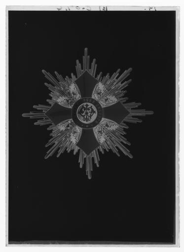 | Keywords: Kraschan Civilförtjänstorden, Bulgarien - Livrustkammaren - 18626-negative.tif LSH artwork sv Fyrauddig strålstjärna av silver lagd över likadan stjärna av förgyllt silver Därpå fäst utsidan av ordenskorset vitemaljerat kors av förgyllt silver med utböjda spetsiga armar Mellan korsarmarna ekkvistar av guld samt grön och gul emalj Rund välvd medaljong täckt med röd genomsynlig emalj därpå fäst vitemaljerat bladornament Vitemaljerad ring med kyrillisk text av guld ZA GRAZDANSKA ZASLUGA På frånsidan fyra muttrar för fastskruvning av den förgyllda strålstjärnan samt vertikalt placerad säkerhetsnål original caption kraschan Civilförtjänstorden Bulgarien - LRK 2163 1936 silver - enamel Färg vit grön gul röd material emalj g 100 size mm 96 LRK Sven Hedin Fil dr upptäcktsresande skriftställare 1865-1952 Stockholm Sverige place of origin original filename LN_B12172_015052 36622 inventory number LRK 2163 18626 CC0 Kraschan Civilförtjänstorden Bulgarien - Livrustkammaren - 18626 tif <gallery caption Related objects > File Civilförtjänstorden Bulgarien - Livrustkammaren - 78552 tif LRK 2161 </gallery> |