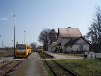 | Keywords: Kravare ve Slezsku train station2.JPG Kravaře ve Slezsku Czech Republic with two Regionova diesel railcars on regular passenger trains 2012-04-04 own Jan Pešula 49 93516 18 006999 region CZ cc-zero Uploaded with UploadWizard Kravaře Opava District Railway line 317 Czech Republic Railway line 318 Czech Republic Train stations in Moravian-Silesian Region CZ Class 814 of ČD | ||||