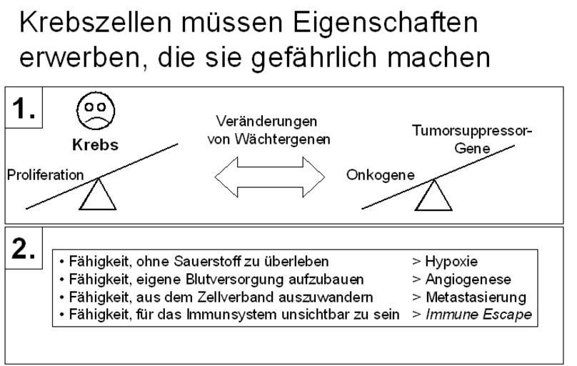 | Keywords: Krebsentstehung T2 110623 FK.png en Picture shows properties of cancer cells which they need to aquire de Bild zeigt Eigenschaften die eine Tumorzelle erlangen muss um gefährlich für den Körper zu werden own Kischkel 2011-06-23 Krebsentstehung_1106092_FK png Cc-zero Diagrams illustrations and schemas concerning cancer |
