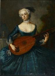 | Keywords: Kreis des Antoine Pesne - Porträt der Eleonore Freifrau von Keyserlingk, geb. Gräfin von Schlieben-Sanditten.jpg circle of otherdate c 1745 Oil on canvas cm 131 8 96 6 Charlottenburg Palace http //www zeno org/Kunstwerke/B/Pesne +Antoine 3A+Eleonore+Freifrau+von+Keyserlingk zeno org http //www reiss-sohn de/frame_buch php page 0012 lang deu Reiss Sohn other versions PD-old-100 DEFAULTSORT Keyserlingk Eleonore Louise von 1745 circa Antoine Pesne Eleonore von Keyserlingk Pesne 1740s dresses 1745 portrait paintings from France F 18th-century oil portraits of standing women at three-quarter length 1745c 18th-century portrait paintings in Germany 1745c Female hair fashion in art Females with blue dresses in art 1745c Females with chokers in art 1745c Females with pearl earrings in art 1745c Paintings of women playing musical instruments Portrait paintings in gardens Portraits with musical instruments Portraits with lute 1745c |