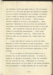 | Keywords: text document writing Description: "The Years Which the Locust Hath Eaten" is a bound typescript, with a brief handwritten addendum. The narrative covers approximately the period from 1936 to 1940, and describes the events and thoughts leading to the Kretzmer family's decision to leave Nazi Germany, their stay in England, and their arrival in the United States. The volume includes two postcards and 13 photographs, most of buildings and landscapes in places that the Kretzmers visited or in which they stayed. Repository: Schlesinger Library on the History of Women in America. Collection: Lilli Cohen Kretzmer Papers Call Number: MC 379 Catalog Record: id.lib.harvard.edu/aleph/001366809/catalog Questions? Ask a Schlesinger Librarian Description: "The Years Which the Locust Hath Eaten" is a bound typescript, with a brief handwritten addendum. The narrative covers approximately the period from 1936 to 1940, and describes the events and thoughts leading to the Kretzmer family's decision to leave Nazi Germany, their stay in England, and their arrival in the United States. The volume includes two postcards and 13 photographs, most of buildings and landscapes in places that the Kretzmers visited or in which they stayed. Repository: Schlesinger Library on the History of Women in America. Collection: Lilli Cohen Kretzmer Papers Call Number: MC 379 Catalog Record: id.lib.harvard.edu/aleph/001366809/catalog Questions? Ask a Schlesinger Librarian |
