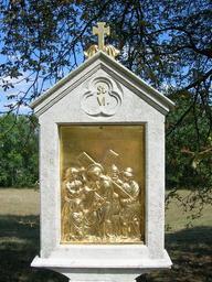 | Keywords: Kreuzweg Frauenberg (Eichstätt) -06.jpg Frauenbergkapelle 14 Bildstöcke ehemals mit Gusseisenreliefs 1856; in ab 1875 angepflanzter Kastanienallee own WaldiWuff 2012-08-15 Kreuzweg Frauenberg Eichstätt 06 Station 6 Veronica wipes the face of Jesus Germany Bavaria Eichstätt Cc-zero |