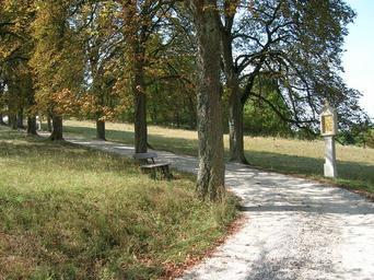 Keywords: Kreuzweg Frauenberg (Eichstätt) -w0809.jpg D-1-76-123-62 Frauenbergkapelle 14 Bildstöcke ehemals mit Gusseisenreliefs 1856; in ab 1875 angepflanzter Kastanienallee own WaldiWuff 2012-08-15 Kreuzweg Frauenberg Eichstätt Cc-zero