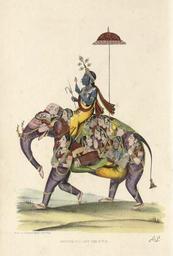 | Keywords: Krishna on a Gopi-elephant.jpg en Krishna on a Gopi-elephant Source http //www christies com/LotFinder/search/LotDetail asp sid intObjectID 4572342 SE CMWCAT04+124237+ 2D1411172591+ QR M+1+43+Aqc0000900+108409++Aqc0000900+ entry india SU 1 RQ True AN 44 downloaded Sept 2005 PARKES Fanny 1794-1875 Wanderings of a Pilgrim in Search of the Picturesque during Four-And-Twenty Years in the East London Pelham Richardson 1850 2 volumes 8° Folding lithographed plan of elevation of the Himalayas in slip pocket in binding 49 lithographs including 20 hand-coloured Original blue pictorial cloth gilt image of man on peacock in gilt on front board blind on back title and vignettes in gilt on spine Fanny Parkes arrived in India with her husband a civil servant in the East India Company in 1822 and remained there until 1845 living first in Calcutta and then in Allahabad She travelled extensively around India sketching as she went Her journal widely acclaimed on its publication for its accuracy and wealth of detail is based on a diary the author kept for her mother 1850 http //www columbia edu/itc/mealac/pritchett/00routesdata/1800_1899/dailylife_drawings/fannyparkes/fannyparkes html Fanny Parkes's PD-Art Uploaded with UploadWizard Engravings of people of India Hand-colored engravings Fanny Parkes 1850 engravings |