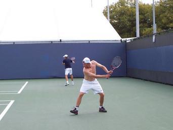 Keywords: Kristian pless us open.JPG Kristian Pless Practicing At The 2004 U S Open With Greg Rusedski In The Background Own 2006-08-24 Me Alexisrael Kristian Pless 2004 US Open tennis Photographs by Alexisrael