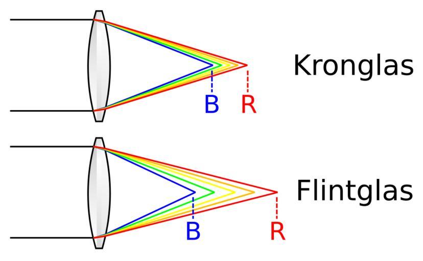 | Keywords: Kron flint.svg de Vergleich der Eigenschaften von Kronglas und Flintglas am Beispiel von Sammellinsen en Comparison of the properties of crown glass und flint glass using the example of collecting lenses own Chrischi 2011-05-09 Cc-zero Flint glass Chromatic aberration diagrams |