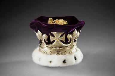 | Keywords: Krona. Prinsessan Margareta - Livrustkammaren - 87044.tif Stämplar på kronringen SG gående lejon lejonhuvud en face S Garrard London 1901 <br/><br/>Kronring av förgyllt silver ringen kantad av två blanka band med grupper om fyra sneda räfflor på ringen imiterade infattade stenar omväxlande ovala och fyrkantiga mellan stenarna två pärlor Från ringen utgår åtta spetsar fyra i form avliljor två mantuakors och två smultronblad samtliga h 47 mm Runt ringens neder kant fastsytt pälsbräm hermelinsimitation <br/><br/>Mössa av purpurfärgad sammet med guldtofs i kullens mitt Foder av vit sidenrips med firmamärke i guldtryck i kullen R S GARRARD Co // Goldsmiths Jewellers // TO THE CROWN // 25 HAYMARKET LONDON samt engelsk kunglig krona Två sidenband korsade inuti mössan Igenom kronringen stucket två ca 100 mm långa hårnålar <br/><br/>Krontyp för souvereigns grandchildren issue of sons in the direct line Begagnad av Lady Patricia Ramsay vid Elisabeth II s kröning 1953 <br/><br/>Med blyerts Lämnade i 21/1 konungens våning hovfröken Reuterswärd den 28 1 1953 tills m nr 52/2 Åter i LRK 17/6 1953 original caption Krona Prinsessan Margareta LRK 64<br/> Nyckelord Krona Rangkrona Föremålsbild Huvudbonader Lila Sammet Hermelinimitation Silver Margareta Connaught Edward VII s kröning Drottning Elisabeth II s kröning 1901 silver - silk Färg vit d2 - dräkt - foder material siden - velvet Färg purpur material sammet - gold thread d4 - dräkt - passpoaler band kantning uppslag material guldtråd g 230 size mm 112 130 LRK Gustaf VI Adolf av Sverige kung hertig av Skåne 1882- Stockholms slott Sverige Margareta av Sverige kronprinsessa 1882-1920 Prinsessor Drottningar - kvinnlighet och makt 1999 Fest och fritid vid hovet 2003 R S GARRARD Co Goldsmiths Garrard Co R S S G Garrard Co R S R S GARRARD Co Goldsmiths Garrard Co R S S G Garrard Co R S place of origin London original filename lm_dig4683_64 36520 inventory number LRK 64 87044 CC-BY-SA Jens Mohr <gallery caption Different images of same object > File Engelsk rangkrona - Livrustkammaren - 52900 tif File Engelsk rangkrona - Livrustkammaren - 44339 tif </gallery> Jens Mohr Silver Headgear Media contributed by LSH unmatched event Media contributed by LSH unmatched creator Media contributed by LSH unmatched keyword Color images from Livrustkammaren Garrard Co Media contributed by LSH 2013-10 |