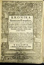 | View Original: | Тытульны аркуш Kronika Sarmacyey Europskiey (Хроніка Еўрапейскай Сарматыі). Кракаў. 1611.jpg (545x800) | |||