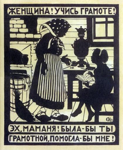 | Keywords: KruglikovaLikbez.jpg en Soviet poster by Elizaveta Kruglikova advocating female literacy The top section reads Woman Learn to read and write At the bottom Oh mommy If you were literate you could help me http //ukrhist at ua/photo/4-0-16 Elizaveta Kruglikova 1923 PD-Russia-2008 Elizaveta Kruglikova Women in posters of the Soviet Union Mother and child in art Peasants in art Females reading in art Literacy Samovar in art 1923 Silhouette drawings of people Kerchiefs in art Children in propaganda Reading in propaganda 1923 in art |