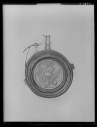 | Keywords: Krutflaska, Ryssland, 1700-talets slut - Livrustkammaren - 2201.tif LSH artwork sv Rund dosformig krutflaska av pressat svärtat läder På framsidan en pressad mässingsplåt d 90 mm med den kejserliga krönta ryska dubbelörnen krönt av en gemensam kejserlig krona och med äpple och spira i klorna välvd kantring På flaskans sidor två läderöglor för bärrem <br/>Rektangulärt munstycksbleck av mässing med fem skruvar på h halva ett invändigt gängat lågt rör däri fastskruvat ett svagt balusterformigt mässingsmunstycke l 20 mm Pipen sluts med en yttre hävarmsslutning i form av en s-formig hävarm fäst på fyrsidig stolpe med något insvängt mittparti Hävarmen fjädrande mot en stålfjäder fäst på flaskans kant nedanför bäröglan original caption century 18 leather Färg svart material läder - steel - brass g 421 size mm 150 55 LRK Erik G son Hjort jägmästare 1832-1922 Råsta Kisa Sverige Alexander E C G von Post Kapten 1843-1899 Stora Djulö Sverige place of origin original filename LN_E00776 39360 inventory number LRK 3156 2201 CC0 Krutflaska Ryssland 1700-talets slut - Livrustkammaren - 2201-negative tif Vessel container Media contributed by LSH 2015-11 Gunpowder flasks images from Livrustkammaren |