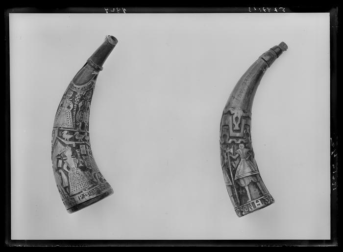 | Keywords: Kruthorn - Livrustkammaren - 17591.tif Böjt kruthorn av horn med snidad dekor i låg relief i två band på nederkanten signatur PEETER KARELSÖN PSI DETAR 1627 Därovanför ett band 60-90 mm högt med tre ryttare varav en med falk på h handen samt en kvinna med en lyft bägare ytfyllande fåglar och hundar Därovanför ett fält med ca 50 mm höga figurer två män och två kvinnor stående i nischer Vid pipen skuret ett hål för bärrem Botten av trä original caption kruthorn - LRK 2994 3000 1627 wood g 111 size mm 165 61 55 LRK Jöns mjölnare Peter Karlsson Gunnar Olof Hyltén-Cavallius doktor PEETER KARELSÖN PSI DETAR 1627 Peter Karlsson place of origin original filename LN_B01822_004702 39595 inventory number LRK 2994 17591 CC0 Kruthorn - Livrustkammaren - 17591-negative tif Media contributed by LSH unmatched material Media contributed by LSH unmatched objKeyword Powder horns Media contributed by LSH 2013-10 |