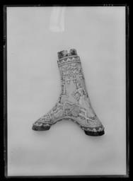 | Keywords: Kruthorn - Livrustkammaren - 43273.tif Thisbe Pyramus plain text Kruthorn av hjorthorn baksidan brun och obehandlad De nedre ändarna tillslutna med stålbottnar raka sargar med kantlinje den större med en skruv På hornets sidor två ringskruvar på vardera sidan <br/><br/>På hornets framsida en snidad dramatisk scen Pyramus och Thisbe - en liggande man med spetsen av en dolk i bröstet till h en stående dam som stöter en dolk i sitt bröst båda är klädda i dräkter från senrenässansen mannen i pluderhosor och strumpor hög styv krage och kort mantel kvinnan i klänning med puffade ärmar likaså med hög styv krage I v hörn ett lejon Golv med fyrkantiga plattor i bakgrunden en murad brunn dit vattnet rinner ur ett odjursgap Upptill kraftiga växtslingor med stora blommor Upptill och nedtill bård med akantus och ett rutskrafferat fält <br/><br/>Krutmått av stål med inre och yttre slutning Pip l 68 mm med horisontella linjer liksom på hävarmen Inre slutningens vertikala ventilarm är profilerad V-fjäder på locket original caption kruthorn - LRK 2981 end other date century 16 deer antler - steel g 455 size mm 182 167 LRK Livrustkammarens basutställning 1978 Rustkammaren på Läckö 2007 Trofast - hov och tass i kunglig tjänst 2010-2011 Livrustkammaren Trogna vänner - Kungliga hästar och hundar 2011-2012 Museiverket/Finlands nationalmuseum place of origin original filename LN_B01825_004705 39582 inventory number LRK 2981 43273 CC0 Kruthorn - Livrustkammaren - 43273-negative tif Powder horns Media contributed by LSH unmatched objKeyword Media contributed by LSH 2013-10 |