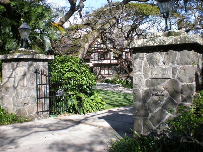 | Keywords: Kualii-Manoard-2859-gateposts.JPG en Gateposts of Kualii 2859 Manoa Road Honolulu Hawaii also known as the Charles Montague Cooke Jr House on the National Register of Historic Places Own Joel Bradshaw 2009-04-07 National Register of Historic Places on Oahu Buildings in Honolulu Hawaii Gateposts in the United States |