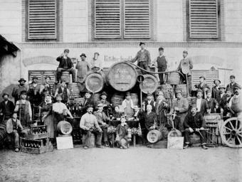 Keywords: Kukčevi pivovarji (1898).JPG sl Slika iz časa pivovarja Simona Kukca Muzej Pivovarna Laško Author 1898 PD-old Laško Brewery 1898 in Slovenia Black and white photographs of Laško
