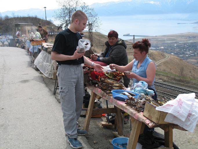 Keywords: Kultuk Fish.jpg en Trade on entrance in Kultuk ru То говля на въезде в Култук own MikSed 2007-04-28 Kultuk People of Irkutsk Oblast Fish markets in Russia Food of Siberia