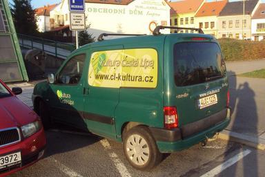 Keywords: Kultura ČL 2.JPG cs Auto organizace u vchodu do kanceláře v kulturáku own Zákupák 2013-10-22 KD Crystal Česká Lípa