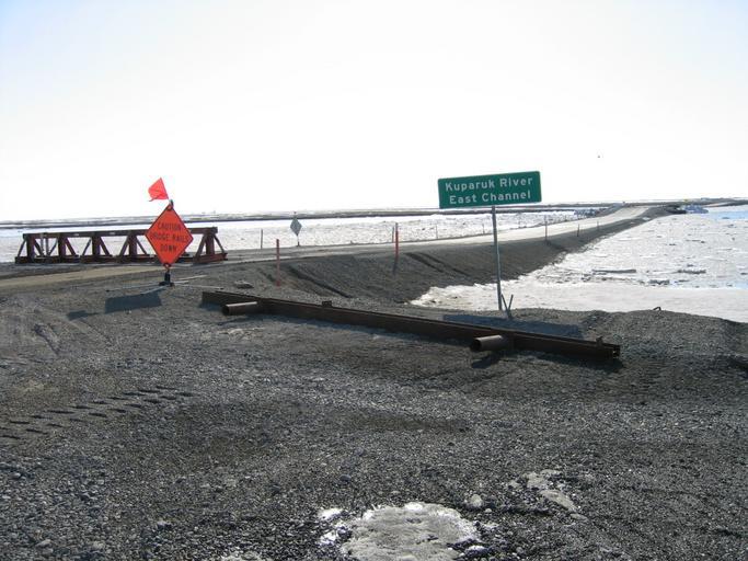 | Keywords: Kuparuk River East Channel.jpg en Kuparuk River East Channel crossing Road closed due to spring breakup with ice and high water Photographed at the river crossing looking west at 7PM May 26 2011 own R p kaiser wiki 2011-05-26 Cc-zero North Slope Borough Alaska |