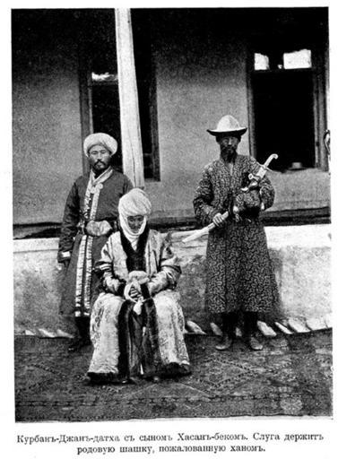 | Keywords: Kurmanjan4.JPG en Photo Kurmandjan Datka son Asanbek left and servant right and holding a sword tribal granted by Kokand Khan ru Фотог афия Ку манджан Датки с сыном Асанбеком слева и слугой сп ава де жащим в уках одовую шашку пожалованную кокандским ханом Ювачёв И П Ку бан-Джа-Датха ка а-ки гизская ца ица Алая // Исто ический вестник 12 1907 Восточная лите ату а Author Конец XIX века Kyrgyz people PD-old Istorichesky Vestnik | ||||