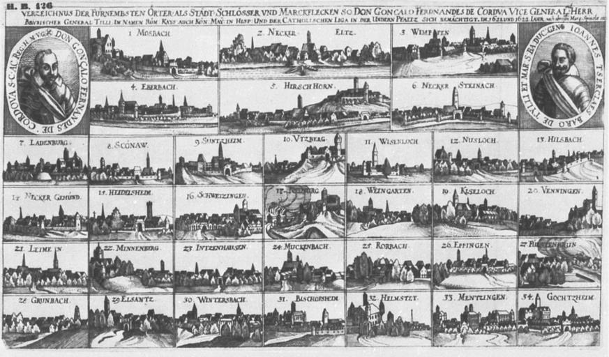 | Keywords: Kurpfalz-30j-Krieg.png de Verzeichnis der 1621/22 von Tilly und Córdoba in der unteren Pfalz eroberten Städte um 1623 Reproduction of a painting that is in the public domain because of its age PD-old-70 Johan t'Serclaes Count of Tilly Gonzalo Fernández de Córdoba 1585-1635 Thirty Years War Palatinate Mosbach Neckarelz Historical images of Bad Wimpfen Eberbach Baden Hirschhorn Neckar Neckarsteinach Ladenburg Schönau Odenwald Sinsheim Veste Otzberg Wiesloch Nußloch Hilsbach Neckargemünd Bruchsal Schwetzingen Neuburg am Rhein Weingarten Baden Waghäusel Burg Neidenstein Leimen Baden Minneburg Heidelberg-Rohrbach Eppingen Grunbach Elsenz Eppingen Neckarbischofsheim Helmstadt-Bargen Kraichtal-Menzingen Kraichtal-Gochsheim |