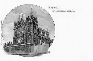 | Keywords: Kursk Catholic Church on postcard (beginning of the XX century).jpg en Roman Catholic church of the Assumption of the Virgin Mary in Kursk Russia on postcard made at the begining of the XX century ru Католический х ам Успения П есвятой Бого одицы в Ку ске на почтовая ка точке начала XX века До еволюционная отк ытка old postcard digital copy downloaded from book циф овая копия заг ужена из книги «В И Скля ук Ф Логачев Ю В Озе ов Ста ые Ку ские Отк ытки Каталог иллюст и ованных почтовых ка точек 1899 1930 годов с объяснением видов го ода Ку ск 2005 г ISBN 5-86354-106-7» http //old kurskcity ru/book/post-cart/page134 html Page ст аница 134 Publisher Издатель издательство магазина Пе еплетенко Begining of the XX century начало XX века 51 43 56 N 36 11 15 85 E PD-Art Catholic church of the Assumption of the Virgin Mary Kursk Kursk on postcards of the Russian Empire |