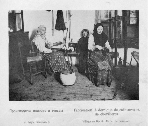| Keywords: Kustari 015 Proizsvodstvo pojasov i tesjmy.jpg en Handicraft Industry and Trades of Nizhegorodskaja gubernija Bor XIX c ru Куста ные п омыслы и емёсла ижего одской губе нии П оизводство поясов и тесьмы Село Бо Семёновского уезда 1896 год Скани ован из книги ижего одская губе ния по исследованиям губе нского земства Выпуск II Куста ные п омыслы ижего одской губе нии / сост А Плотников СПб 1896 еизвестный фотог аф конца XIX века 1896 PD-old Handicraft Industry of Nizhny Novgorod province | ||||