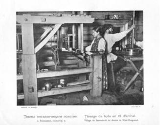 | Keywords: Kustari 088 Metallicheskoe polotno.jpg en Handicraft Industry and Trades of Nizhegorodskaja gubernija Bezsvodnoe XIX c ru Куста ные п омыслы и емёсла ижего одской губе нии Тканьё металлического полотна Село Безводное ижего одского уезда 1896 год Скани ован из книги ижего одская губе ния по исследованиям губе нского земства Выпуск II Куста ные п омыслы ижего одской губе нии / сост А Плотников СПб 1896 еизвестный фотог аф конца XIX века 1896 PD-old Handicraft Industry of Nizhny Novgorod province |
