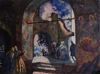 View Original:kustodiev_under_arches_old_church_1918.jpg (1000x741)
