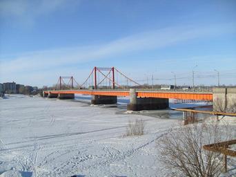 Keywords: Kuznechevsky bridge.jpg ru Кузнечевский мост Own 2008-03-19 Sasha Krotov Bridges in Arkhangelsk Suspension bridges in Russia