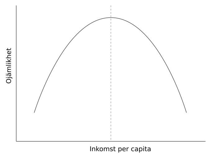 Keywords: Kuznetskurva.svg Kuznetskurvan visar hur en ekonomi efter en vändpunkt ser ökad jämnlikhet i resursfördelningen efter en viss grad av utveckling här mätt i inkomst per capita own Josef lilljegren Cc-zero Macroeconomic diagrams