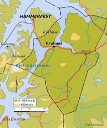 Keywords: Kvalsund map.jpg en Map of Kvalsund municipality Norway Own Jensens 2008-12-05 Maps of Finnmark Kvalsund