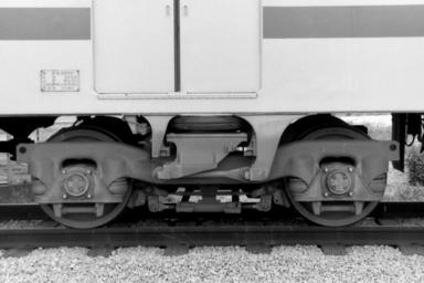 | Keywords: KW-9 bogie truck on Nishitetsu 2000.jpg en KW-9 bogie truck on Nishitetsu 2000 ja 西鉄2000形のKW-9台車 1989-08-02 own Hahifuheho other versions cc-zero Nishitetsu 2000 series Bogie trucks by Kawasaki Heavy Industries Black and white photographs of trains in Japan 1989 in rail transport in Japan |