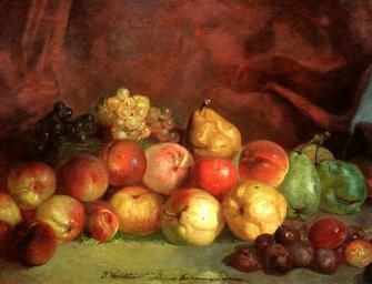 | Keywords: Kwiatkowski Fruits.jpg Artwork Creator Teofil Kwiatkowski 1888 oil canvas cm 48 64 Institution National Museum Warsaw Not on view accession number MP 321 object history credit line T Kwiatkowski wdzięczny Doktorowi / 1888 signature/date http //cyfrowe mnw art pl/dmuseion/docmetadata id 4721 cyfrowe mnw art pl See below PD-old-100 DEFAULTSORT 1888; Fruits Teofil Kwiatkowski 1888 paintings 1880s still-life paintings Kwiatkowski Paintings by Teofil Kwiatkowski in the National Museum in Warsaw 19th-century still life paintings of fruits Kwiatkowski |