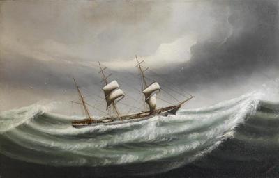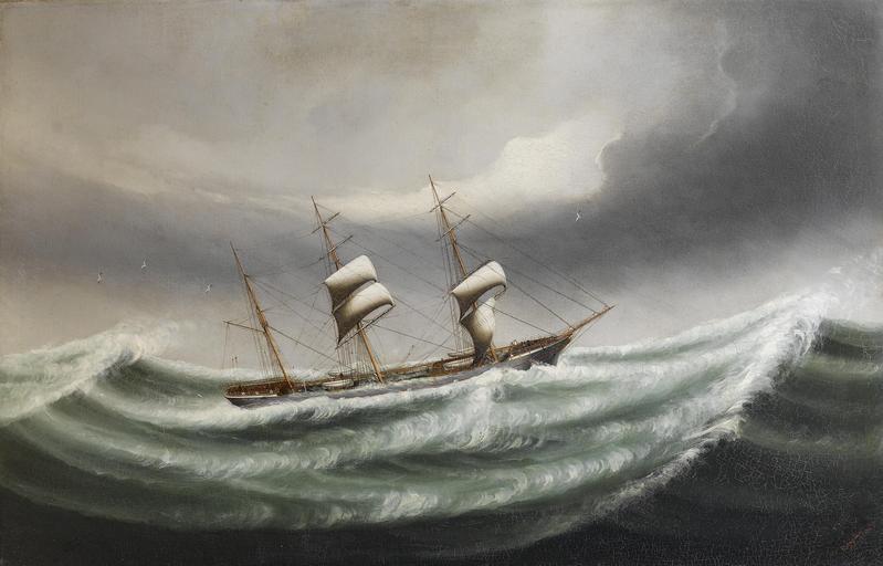 | Keywords: Kwong Sang - The barque Hawthornbank in stormy waters (1894).jpg 1894 oil canvas cm 78 8 122 5 object history credit line signed 'Kwong Sang' inscribed 'Calcutta' and dated '1894' lower right The Hawthornbank was a three-masted barque built by Russell Co Port Glasgow in 1889 and owned by Andrew Weir Co Glasgow It was sold to J A Henschein Co Norway in 1910 and then to Motorselsk Marienborg Denmark in 1915 She was torpedoed and sunk off the north coast of Scotland on 25 April 1917 accession number http //www bonhams com/auctions/14681/lot/50/ Bonhams London 12 Dec 2007 lot 50 PD-old-100 Kwong Sang Hawthornbank ship 1889 19th-century sailing ships in paintings 1894 oil on canvas paintings |