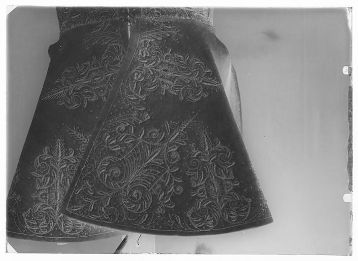 | Keywords: Kyller ca 1630 - Livrustkammaren - 8877-negative.tif LSH artwork sv Kyller av älghud tillskuret med livsöm och utan ärmar Mitt bak och i sidorna ett snedskuret sprund från livsömmen Broderier med guld- och silvertråd samt paljetter i form av rank- och blomornament Broderierna koncentrerade till kanter och hörn <br/>Foder av ljusblått linne Baksidan av broderiet med gult och vitt lingarn <br/>I livets framkant nitton små hål på vardera sidan för snörning original caption ca 1630 flax yarn Färg gul vit d2 - dräkt - foder material lingarn - linen Färg ljusblå d2 - dräkt - foder material linne - elk d1 - dräkt - yttermaterial material älghud - silver d4 - dräkt - passpoaler band kantning uppslag material silvertråd - gold thread d4 - dräkt - passpoaler band kantning uppslag material guldtråd size mm 720 size mm 430 skört size mm 290 liv kg 3 5 LRK Erik Hansson Soop överste Jakt 1973 Läckö slott Modelejon 2002 place of origin original filename LN_B00301_003181 48172 inventory number LRK 11568 8877 CC0 Kyller ca 1630 - Livrustkammaren - 8877 tif <gallery caption Different images of same object > File Kyller - Livrustkammaren - 17140 tif File Kyller ca 1630 - Livrustkammaren - 26564 tif </gallery> |