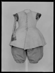 | Keywords: Kyller Dirschau - Livrustkammaren - 60031.tif Kyller använt av Gustav II Adolf vid Dirschau den 6 augusti 1627 w Buff coat used by Gustavus Adolphus of Sweden at the Kyller av älghud med ärmar av siden numera endast fragment kvar Kyllret är kraglöst och avskuren i midjan med långa skört 4 stycken <br/><br/>Längd mitt fram liv 36 5 cm skört 41 5 cm <br/>Bröstvidd 105 cm <br/>Längd mitt bak liv 41 5 cm skört 40 5 cm <br/>Ryggbredd 40 cm <br/>Midja 106 cm <br/>Vidd skörtens nederkant 281 cm <br/>Längd i sida liv 24 cm skört 43 3 cm <br/>Axelbredd 17 6 cm <br/>Ärmlängd 69 cm största ärmvidd 34 cm ärmvidd nedtill 28 cm <br/>Ärmsprundet är 18 cm Åtta knapphål vänster ärm har 4 silvertrådsklädda knappar och höger ärm har 7 knappar kvar <br/>Ärmens innersöm har en 15 5 cm lång öppning med 8 öglor av silvertråd på var sida över var ögla sitter en sydd träns av sysilke <br/><br/>Sömmarna runt framkant hals på axlar och längs skörtens sidor är dekorationsstickade med tre parallella sömmar i vit lintråd Snörning mitt fram med nio grupper med två hål i varje grupp på var sida Snörningen har blodfläckar Skörtets söm mitt bak på höger bakstycke har gått upp ca 1 cm Ärmarna har rester av sitt yttertyg ett ljust brun atlas samt ett foder av ljust brun taft Kyllret har axelkarmar och endast mycket små rester av atlasen finns kvar däremot återstår det mörkt bruna kanvasen som utgjort mellanlägg i tre lager tyg Kanvasen är belagd med en yta för styvnadens skull Livet i kyllret är fodrat med vitt linne förmodligen som mellanfoder w Buff coat of elk hide with sleeves made of silk of which now only fragments remain The coat is collarless and seamed at the waist with long skirts in four pieces Center front length body 36 5 cm 41 5 cm skirts Chest 105 cm Center back length 41 5 cm body skirts 40 5 cm Back width 40 cm Waist 106 cm Width skirt hem 281 cm Length at side body 24 cm 43 3 cm skirts Shoulder Width 17 6 cm Sleeve length 69 cm Maximum sleeve width 34 cm Sleeve width at bottom 28 cm Sleeve opening 18 cm Sleeves have eight buttonholes; the left sleeve has four silver-wrapped thread covered buttons and the right sleeve has seven buttons left The coat's inseam has a 15 5 cm long opening with 8 loops of silver wire On each side of the loop is a stitched tack of sewing silk The seams around the front edge of the neck the shoulders and along the sides of skirt are decorated with three parallel rows of stitching in white linen thread The lacing at the front has nine groups of two holes in each group on each side The lacing has blood stains Skirt seam at center back on the right rear panel has gone up about 1 cm The sleeves have the remains of their outer shell a light brown silk atlas satin and a lining of light brown taffeta The coat has shoulder wings with only small remnants of the atlas remaining over the dark brown the canvas that formed inserts in the three-layer fabric The canvas is coated with a surface for stiffenings' sake The body of the coat is lined with white linen presumably as interlining original caption kyller Dirschau - LRK 31194 Slaget vid Dirschau Battle of Dirschau 1627 silk d1 - dräkt - yttermaterial material siden size mm 365 mitt fram LRK Gustav II Adolf av Sverige Gustavus Adolphus of Sweden Basutställning Gustav II Adolf Minnesutställning 1932 1932 place of origin original filename LN_A01077_001077 67807 inventory number LRK 31194 60031 CC0 Kyller Dirschau - Livrustkammaren - 60031-negative tif <gallery caption Different images of same object > File Kyller använt av Gustav II Adolf vid Dirschau den 6 augusti 1627 - Livrustkammaren - 61181 tif File Detaljbild på axelstycke Gustav II Adolfs älghudsskyller från Dirschau år 1627 - Livrustkammaren - 65278 tif File Detaljbild på ärm Gustav II Adolfs älghudsskyller från Dirschau år 1627 - Livrustkammaren - 22477 tif File Kyller Dirschau - Livrustkammaren - 42910 tif File Kyller använt av Gustav II Adolf vid Dirschau den 6 augusti 1627 - Livrustkammaren - 44060 tif File Gustav II Adolfs dräkt från slaget vid Dirschau 1627 - Livrustkammaren - 56717 tif File Kyller använt av Gustav II Adolf vid Dirschau den 6 augusti 1627 - Livrustkammaren - 35501 tif File Detaljbild ena armen på Gustav II Adolfs älghudsskyller från Dirschau år 1627 - Livrustkammaren - 73840 tif File Detaljbild på tyg Gustav II Adolfs älghudskyller från Dirschau år 1627 - Livrustkammaren - 13914 tif File Kyller Dirschau - Livrustkammaren - 51470 tif File Kyller använt av Gustav II Adolf vid Dirschau den 6 augusti 1627 - Livrustkammaren - 52620 tif </gallery> Media contributed by LSH unmatched event Media contributed by LSH unmatched material Buff coats Media contributed by LSH unmatched objKeyword Clothing in Livrustkammaren Media contributed by LSH 2013-10 |