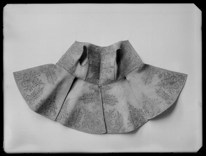 | Keywords: Kyller - Livrustkammaren - 17140.tif LSH artwork sv Kyller av älghud tillskuret med livsöm och utan ärmar Mitt bak och i sidorna ett snedskuret sprund från livsömmen Broderier med guld- och silvertråd samt paljetter i form av rank- och blomornament Broderierna koncentrerade till kanter och hörn <br/><br/>Foder av ljusblått linne Baksidan av broderiet med gult och vitt lingarn <br/><br/>I livets framkant nitton små hål på vardera sidan för snörning original caption kyller LRK 11568 ca 1630 gold thread d4 - dräkt - passpoaler band kantning uppslag material guldtråd - silver thread d4 - dräkt - passpoaler band kantning uppslag material silvertråd - linen Färg ljusblå d2 - dräkt - foder material linne size mm 720 size mm 290 liv size mm 430 skört kg 3 5 LRK Erik Hansson Soop överste Jakt 1973 Läckö slott Modelejon 2002 place of origin original filename LN_A00192_000192 48172 inventory number LRK 11568 17140 CC0 Kyller - Livrustkammaren - 17140-negative tif <gallery caption Different images of same object > File Kyller ca 1630 - Livrustkammaren - 26564 tif </gallery> Media contributed by LSH unmatched material Media contributed by LSH dim-with multiple size templates Media contributed by LSH without any categories Media contributed by LSH unmatched objKeyword Media contributed by LSH 2014-06 |