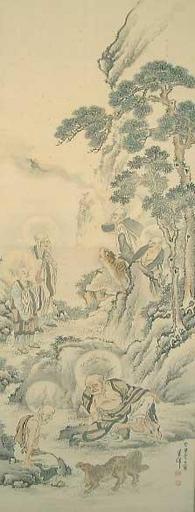 Keywords: Kyoyo Six Sennin.jpg Kyōyō Six Sennin 1914 Sumi ink and soft colors on silk 22 x 75 The painting depicts six sennin or Taoist immortals in ragged clothing and living in the mountains of China One unleashes his spirit as a dragon another presents a carving of Daruma while two others speak with a creature of Chinese mythology From http //www trocadero com/Kris/items/85308/en3 html here PD-Art Art of the Prewar Japan Xian Taoism Japanese dragons Mythology of Japan Paintings on scrolls from Japan Taoism in Japan 1914 paintings 1914 in Japan Kyōyō Sennin Artworks missing infobox template |