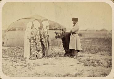 | Keywords: Kyrgyz Wedding Rites. Inspection by the Groom WDL10893.png Artwork ru Кун Александ Людвигович 1840 1888 гг fr Kun Aleksandr L 1840-1888 en Kun Aleksandr L 1840-1888 zh 亚历山大·L· ,1840-1888 年 pt Kun Aleksandr L 1840-1888 ar كُن، ألكسندر ل ، 1840-1888 es Kun Aleksandr L 1840-1888 ru Свадебные об яды ки гизов Смот жениха fr Rites de mariage kirghizes Examen par le marié en Kyrgyz Wedding Rites Inspection by the Groom zh 吉尔吉斯的婚礼习俗:新郎的端详 pt Ritos de casamentos no Quirguistão Inspeção pelo noivo ar طقوس الزفاف القرغيزية تفحُّص بواسطة العريس ru Эта фотог афия входит в этног афическую часть <em> Ту кестанского альбома </em><em></em> всесто оннего исследования Цент альной Азии п едп инятого после того как в 1860-х годах в егионе установилось господство Российской импе ии Альбом созданный по аспо яжению гене ала Константина Пет овича фон Кауфмана 1818 1882 годы пе вого гене ал-губе нато а оссийского Ту кестана состоит из четы ех частей в шести томах «Часть а хеологическая» два тома «Часть этног афическая» два тома «Часть п омысловая» один том и «Часть исто ическая» один том Основным составителем альбома был оссийский востоковед Александ Людвигович Кун аботавший совместно с иколаем Венедиктовичем Богаевским В альбоме п едставлено около 1200 фотог афий а также а хитекту ные планы аква ельные исунки и ка ты «Часть этног афическая» включает в себя 491отдельную фотог афию на 163 листах а фотог афиях изоб ажены п едставители азличных на одов егиона листы 1 33 повседневная жизнь и итуалы листы 34 91 а также виды де евень и го одов уличные то говцы и комме ческая деятельность листы 92 163 <br> евесты; Этног афические фотог афии; Женихи свадьбы ; Ки гизский; Фотог афические исследования; Об яды и це емонии; Свадьбы fr Cette photographie est extraite de la partie ethnographique de l'<em>Album du Turkestan</em> étude visuelle complète de l'Asie centrale entreprise après que l'Empire russe prit le contrôle de la région dans les années 1860 Commandé par le général Konstantin Petrovich von Kaufman 1818 1882 premier gouverneur général du Turkestan russe l'album est composé de six volumes en quatre parties la partie archéologique deux volumes la partie ethnologique deux volumes la partie sur les métiers un volume et la partie historique un volume L'album fut essentiellement compilé par l'orientaliste russe Aleksandr L Kun assisté de Nikolai V Bogaevskii Il comporte près de 1200 photographies et inclut également des plans architecturaux des dessins à l'aquarelle et des cartes La partie ethnographique compte 491 photographies sur 163 planches montrant des individus des différentes peuplades de la région planches 1 à 33 des scènes de la vie quotidienne et des rites planches 34 à 91 ainsi que des vues de villages et de villes de vendeurs ambulants et d'activités commerciales planches 92 à 163 <br>Mariées; Photographies ethnographiques; Jeunes mariés mariages ; Kirghizie; Inventaires photographiques; Rites et cérémonies; Noces en This photograph is from the ethnographical part of <em>Turkestan Album</em><em> </em>a comprehensive visual survey of Central Asia undertaken after imperial Russia assumed control of the region in the 1860s Commissioned by General Konstantin Petrovich von Kaufman 1818 82 the first governor-general of Russian Turkestan the album is in four parts spanning six volumes Archaeological Part two volumes ; Ethnographic Part two volumes ; Trades Part one volume ; and Historical Part one volume The principal compiler was Russian Orientalist Aleksandr L Kun who was assisted by Nikolai V Bogaevskii The album contains some 1 200 photographs along with architectural plans watercolor drawings and maps The Ethnographic Part includes 491 individual photographs on 163 plates The photographs show individuals representing the different peoples of the region Plates 1 33 ; daily life and rituals Plates 34 91 ; and views of villages and cities street vendors and commercial activities Plates 92 163 <br>Brides; Ethnographic photographs; Grooms Weddings ; Kyrgyz; Photographic surveys; Rites and ceremonies; Weddings zh 这张照片出自<em> 其斯 相册 </em><em> </em>的民族部分,该相册是俄罗斯 国 19 世纪 60 年代取得中亚控制 后, 手制 的 部针对该 区的综合 图像调查记录 相册由俄罗斯驻 其斯 (俄罗斯 国中亚属 的名称)首任 康斯 丁·彼得罗维奇·凡· 夫曼(Konstantin Petrovich von Kaufman,1818 82 年)将军赞助完成,共分六卷,四个部分: 古部分 (两卷); 民族部分 (两卷); 贸易部分 ( 卷)和 历史部分 ( 卷) 相册的主要编纂人是俄罗斯 方学 亚历山大·L· Aleksandr L Kun 亚历山大是 尼可莱·V·柏盖维斯基 Nikolai V Bogaevskii 的协助下完成相册的编纂 相册共含 1200 张照片,另 建筑平 图 水彩画和 图 民族部分 包括 491 张个人照,占 163 页 照片展现了该 区各个民族的人物形象(1-