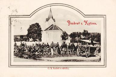 | Keywords: KytÃn - vojsko u kostela.jpg KytÃn nedaleko MnÃÅ¡ku pod Brdy vojsko pÅ™ed stÅ™elbami na návsi pÅ™ed kostelem Nanebevzetà Panny Marie KytÃn “ artillery before practice shooting Buchtová Jana et al Pozdrav z MnÃÅ¡ku kniha historických pohlednic MÄ›sto MnÃÅ¡ek pod Brdy 2009 str 57 ISBN 978-80-254-4094-0 author 1904 49 51 0 N 14 13 8 E type landmark_region CZ Anonymous-EU KytÃn Church of Assumption of Mary in KytÃn Artillery of Austro-Hungarian Empire Postcards of Bohemia before 1918 1904 postcards Files by User Gumruch from cs wikipedia/Skeny |