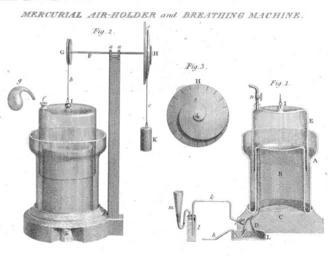 | Keywords: blackandwhite monochrome illustration drawing sketch white background black and white L0034545 Mercurial Air-holder and Breathing Machine Credit: Wellcome Library, London. Wellcome Images images@wellcome.ac.uk wellcomeimages.org Mercurial Air-holder and Breathing Machine. Plate at the begining of Research 1: Concerning the Analysis of Nitric Acid and Nitrous Gas and the Profuction if Nitrous Oxide. Fig 1 Represent a section of the machine, which consists of a strong glass cylinder (A), cemented to one of the same kind (B), fitted to the solid block (C), into which the glass tube (D) is cemented for conveying air into the moveable receiver (E). The brass axis (Fig 2, F) having a double bearing at (a, a) is terminated at one end by the wheel (G), the circumference of which equal to the depth of the receiver, so that it mat be drawn to the surface of the mercury by the cord (b) in one revolution; to the other end is fitted the wheel (H) front view seen in Fig 3... Researches chemical and philosophical: chiefly concerning nitrous oxide or dephlogisticated nitrous air and its respiration Humphry Davy Published: 1800 Copyrighted work available under Creative Commons Attribution only licence CC BY 4.0 creativecommons.org/licenses/by/4.0/ L0034545 Mercurial Air-holder and Breathing Machine Credit: Wellcome Library, London. Wellcome Images images@wellcome.ac.uk wellcomeimages.org Mercurial Air-holder and Breathing Machine. Plate at the begining of Research 1: Concerning the Analysis of Nitric Acid and Nitrous Gas and the Profuction if Nitrous Oxide. Fig 1 Represent a section of the machine, which consists of a strong glass cylinder (A), cemented to one of the same kind (B), fitted to the solid block (C), into which the glass tube (D) is cemented for conveying air into the moveable receiver (E). The brass axis (Fig 2, F) having a double bearing at (a, a) is terminated at one end by the wheel (G), the circumference of which equal to the depth of the receiver, so that it mat be drawn to the surface of the mercury by the cord (b) in one revolution; to the other end is fitted the wheel (H) front view seen in Fig 3... Researches chemical and philosophical: chiefly concerning nitrous oxide or dephlogisticated nitrous air and its respiration Humphry Davy Published: 1800 Copyrighted work available under Creative Commons Attribution only licence CC BY 4.0 creativecommons.org/licenses/by/4.0/ |