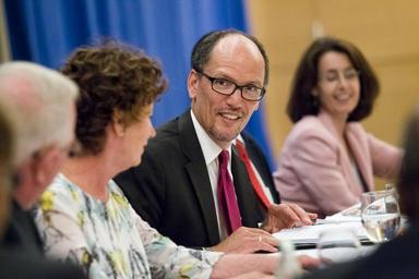 | Keywords: L-14-06-04-C.320 (14352406274).jpg 4 June 2014 -Washington DC - Vice President of the United States Joe Biden and U S Secretary of Labor Thomas Perez participated in a Third Way roundtable and listening session to discuss skills and workforce development Brief opening remarks were delivered by Jon Cowan President of Third Way Secretary Perez then delivered remarks and then introduced Vice President Biden The audience was allowed to ask questions at the end which concluded the first session Secretary Perez started session two joined by Nancy Hale Sr VP of Third Way who expanded the discussion from the first session The roundtable included Byron Auguste senior partner at McKinsey Company in Washington DC; Edward Gordon Author and Consultant Imperial Consulting Corporation; Rufus Glasper Chancellor Maricopa Community Colleges; Deborah Shepherd President Lake Area Technical Institute; Steven L VanAusdle President Walla Walla Community College; Barbara Veazey President and CEO West Kentucky Community and Technical College; Doris Gonzalez Director of Corporate Citizenship Corporate Affairs IBM; Shaila Ittycheria Co-Founder Enstitute; Earl A Buford President and CEO Wisconsin Regional Training Partnership/BIG STEP Milwaukee WI ; Maureen Conway PICTURED RIGHT Executive Director Aspen Institute Workforce Strategies Initiative The Aspen Institute; Patrick Cushing CEO Co-Founder WorkHands; William Hite General President United Association of the Journeymen and Apprentices of the Plumbing and Pipe Fitting Industry; Michael I Callanan Executive Director National Joint Apprenticeship and Training Committee for the Electrical Industry NJATC ; Matt Bennett Senior Vice President for Public Affairs Third Way; Ashwin Bharath Pushpanayagam Chief Operating Officer Multivision; Gabe Horwitz Director of the Economic Program Third Way; Jim Kessler Senior Vice President for Policy Third Way and Karen Sitnick Director Workforce Investment Board of Baltimore Official Department of Labor Photograph This official Department of Labor photograph is being made available only for publication by news organizations and/or for personal use printing by the subject s of the photograph The photograph may not be manipulated in any way and may not be used in commercial or political materials advertisements emails products and/or promotions that in any way suggest approval or endorsement of the Secretary or the Department of Labor Photo Credit Department of Labor https //www flickr com/photos/usdol/14352406274/ L-14-06-04-C 320 2014-06-04 15 31 https //www flickr com/people/52862363 N07 US Department of Labor PD-USGov US Department of Labor https //flickr com/photos/52862363 N07/14352406274 2016-09-06 06 35 14 United States Government Work Uncategorized 2016 December 21 |