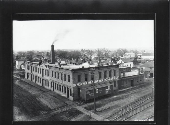 | Keywords: kalamazoo history public library photography railroads manufacturing architecture michigan photo border blackandwhite outdoor black and white L. Cahill & Co., looking northeast from corner of Church and Willard, Kalamazoo, 1891-92. Frank Street School and North Presbyterian Church in background. Michigan Central Railroad box car in foreground. KPL catalogue number P-172 L. Cahill & Co., looking northeast from corner of Church and Willard, Kalamazoo, 1891-92. Frank Street School and North Presbyterian Church in background. Michigan Central Railroad box car in foreground. KPL catalogue number P-172 |