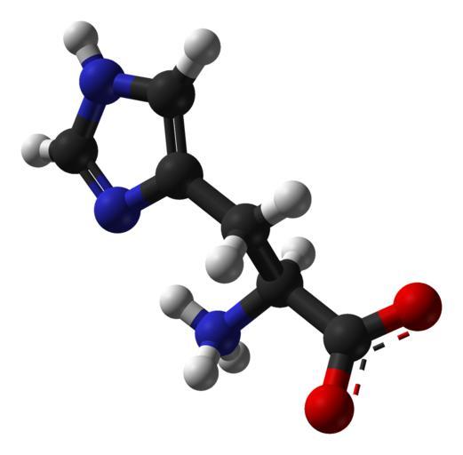 Keywords: L-histidine-zwitterion-from-xtal-1993-3D-balls-B.png Ball-and-stick model of the <small>L</small>-histidine zwitterion as found in the solid state X-ray diffraction data from Z Krist 1993 207 111 Model constructed in http //www crystalmaker com/ CrystalMaker 8 1 Image generated in http //accelrys com/products/discovery-studio/visualization/discovery-studio-visualizer html Accelrys DS Visualizer Own 2009-05-01 Ben Mills Benjah-bmm27 Images by Ben Mills L-histidine Ball-and-stick models |